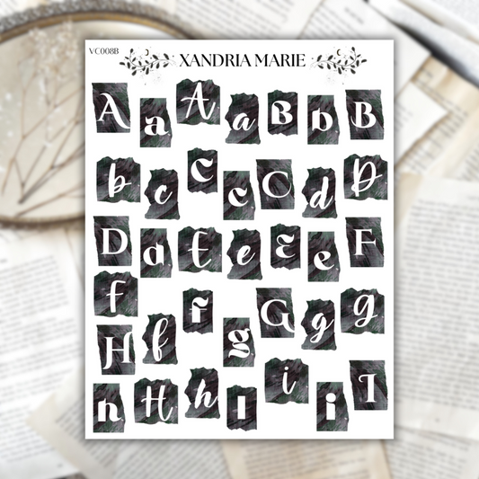 B&W Alphabet Sticker Sheets
