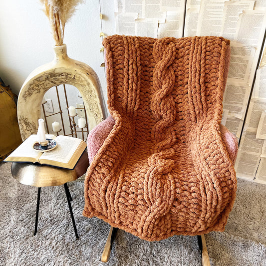 Bow Chunky Knit Cozy Blanket, Soft Chenille Throw Blanket