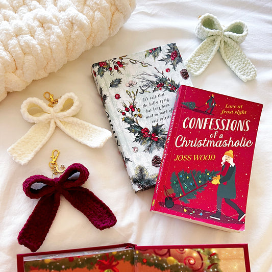 Christmas Bow Vertical Chenille Book Sleeve, Planner Pouch
