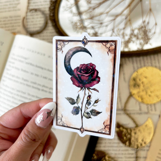 Rose & Moon Tarot Card Holographic Vinyl Diecut Sticker