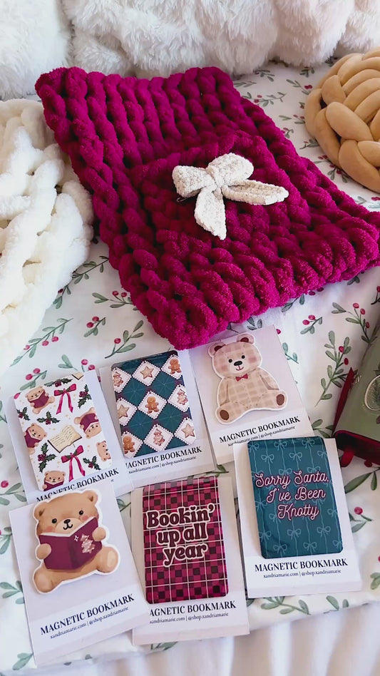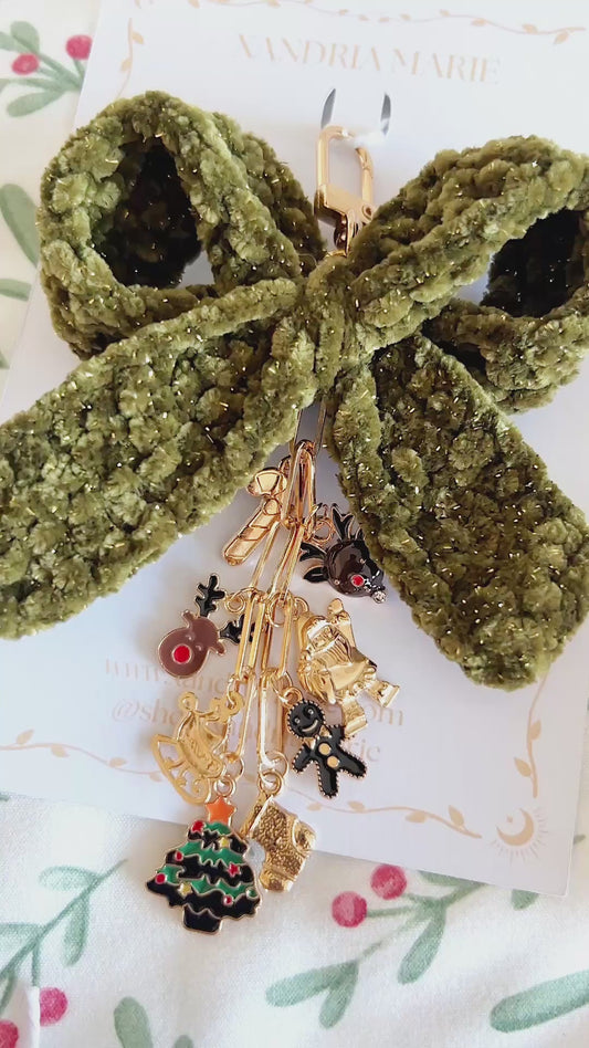 Christmas Bow Vertical Chenille Book Sleeve, Planner Pouch