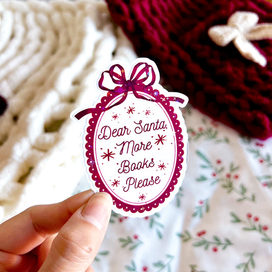 Dear Santa, More Books Please Holographic Vinyl Diecut Sticker