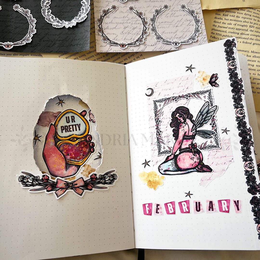This listing is for 1 bundle of ephemera from the Sweet Allure collection. Sticker sheets, die cut stickers and bookmarks from this collection are also available in the shop.
